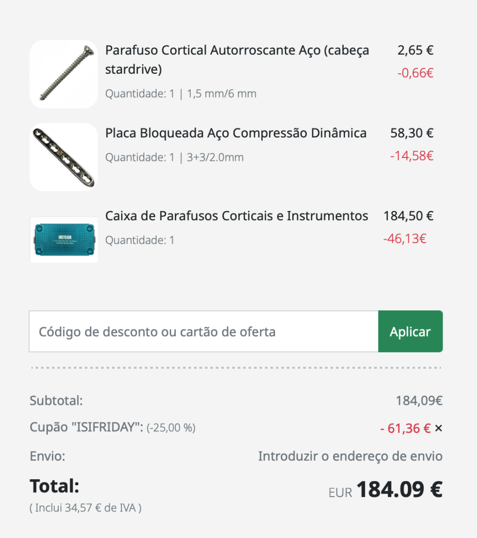 25% de Desconto em todas as compras superiores a 100€ com o código ISIFRIDAY (a aplicar diretamente no carrinho).